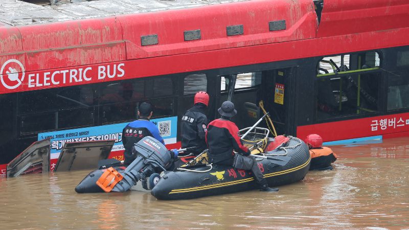 Los equipos de rescate lucharon el domingo para llegar hasta las personas atrapadas en un túnel inundado en Corea del Sur, donde al menos 37 personas murieron y nueve están desaparecidas tras las fuertes lluvias que provocaron inundaciones y deslizamientos de tierra.