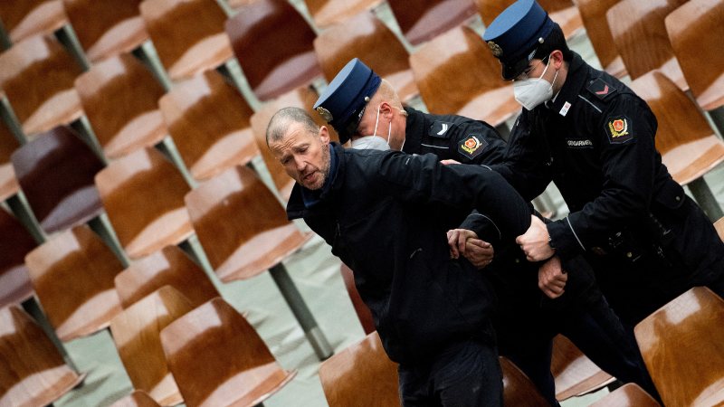 El hombre de entre 40 y 50 años comenzó a gritar en inglés interrumpiendo al Papa, que estaba leyendo su catequesis. Según testigos protestó en contra del uso de mascarilla y contra el pontífice.