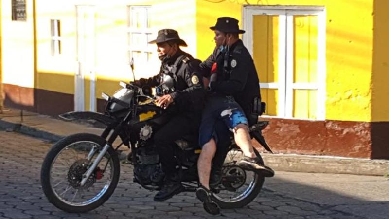 Aparentemente la unidad policial más cercana a la zona era un grupo de agentes en motocicleta que llegaron para controlar la situación, tras la captura y esposar al sujeto en el barrio El Rosario en Coatepeque.