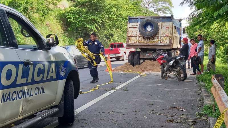 Un motociclista murió esta mañana tras chocar contra un camión cargado de tierra que estaba estacionado sobre el kilómetro 145 y medio de la carretera que conduce al desvío El Delirio, en San Miguel.