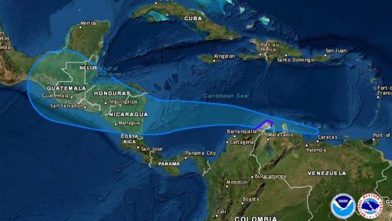 "Condiciones de tormenta tropical son esperadas a lo largo de porciones de la Península Guajira de Colombia la noche del jueves y temprano del viernes (…). Ráfagas con la fuerza de una tormenta tropical son posibles en el norte de Venezuela, Aruba, Curazao y Bonaire a lo largo del viernes", detalla la alerta del NHC.