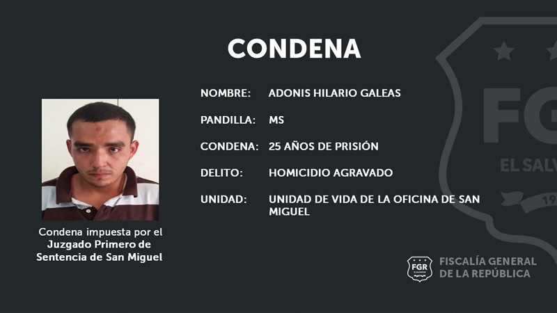La Fiscalía General de la República emitió un comunicado en el que condenan al pandillero por haber participado en el homicidio ocurrido en San Miguel en el año 2016.