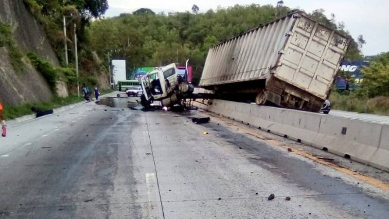 Trailer se accidenta e incendia en carretera al Puerto