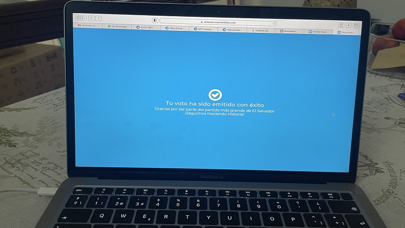 Wendy Clavijo, secretaria de salvadoreños en el exterior de Nuevas Ideas, compartió imágenes de afiliados en el exterior que también emitieron su voto virutal.