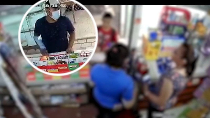 En el video de 50 segundos, se observa cuando un hombre con gorra y mascarilla llega a una tienda para exigir el dinero de la extorsión, pero la persona a cargo le asegura que ya  habló con el “Chino Rudy”.