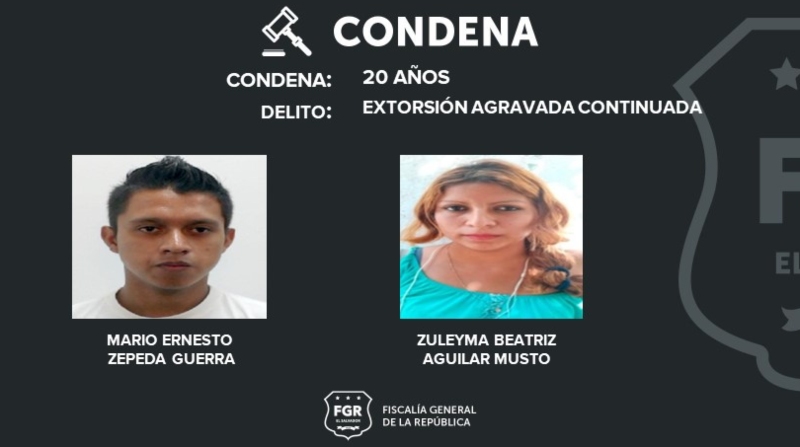 Una mujer y un hombre fueron sentenciados a 20 años de cárcel en Santa Ana por extorsionar a un comerciante al que le exigían el pago de $300 a cambio de no atentar contra su vida.