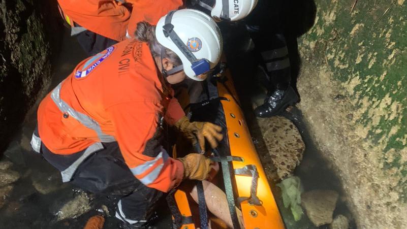Al lugar se hicieron presentes los agentes de la PNC, quienes acordonaron la zona donde se encontraba el cuerpo sin vida. También llegaron los elementos del Equipo Táctico Operativo de Protección Civil, con equipo para rescate vertical, entre ellos; una camilla especializada para subir el cadáver y cuerda para poder sostenerlo.