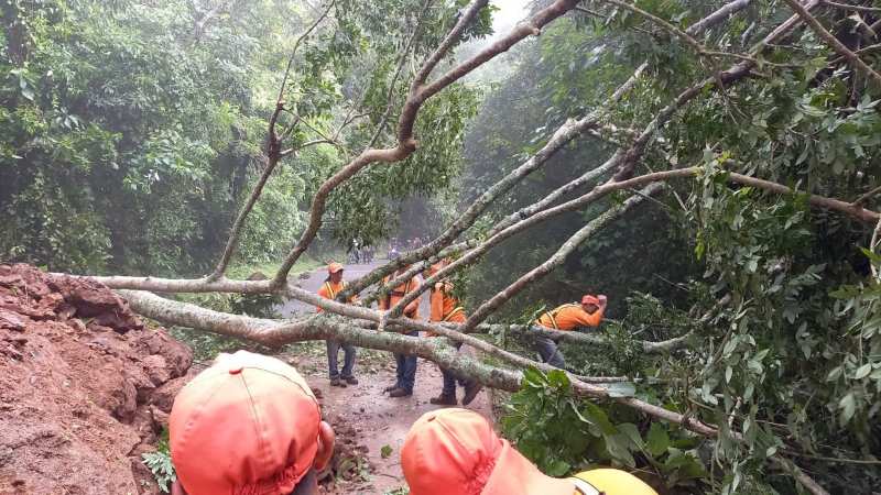 El deslave cubrió los dos carriles de la carretera , un enorme árbol quedó atravesado en la vía. Por varias horas el paso fue inhabilitado.