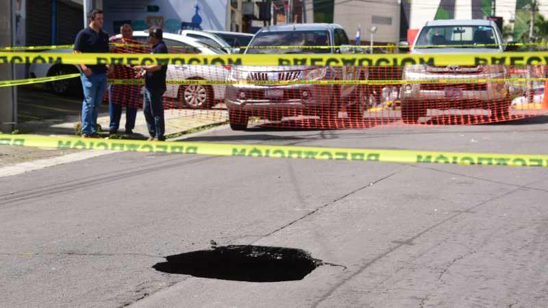 Técnicos del Ministerio de Obras Públicas (MOP) confirmaron que el agujero de tamaño considerable era producto de una tubería de aguas negras rota.