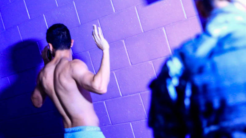 En el video de la misma institución policial se observa cómo los policías verifican a cada huésped para constatar que no tienen tatuajes en las pantorrillas, piernas y pecho.