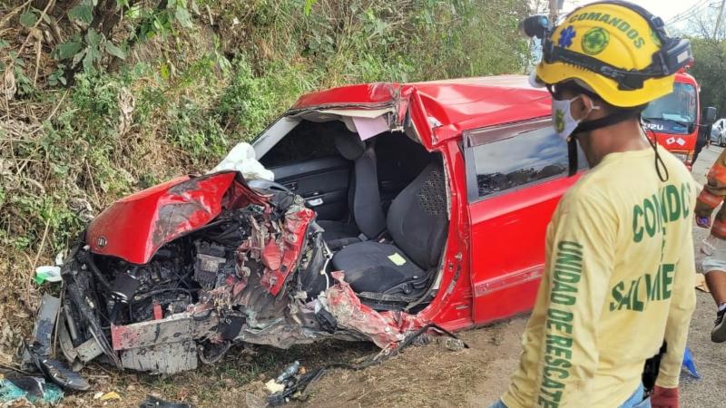 Una mujer murió y tres personas más resultaron lesionadas esta tarde tras accidentarse sobre el kilómetro 13 y medio de la Autopista a Comalapa, a pocos metros de una reconocida fábrica de café de Santo Tomás.