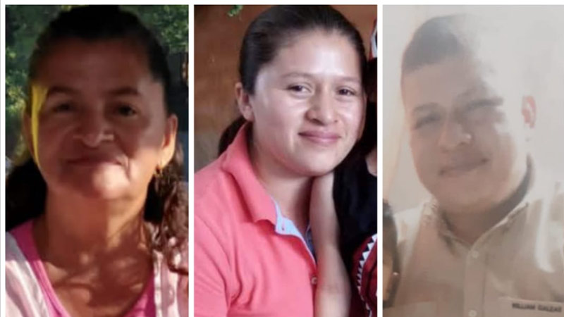 Flor Marina González Martínez, de 55 años; Judith Esmeralda Galeas de Rivas. de 33; y Willian Alexander Galeas González, de 36, fueron arrestados el pasado miércoles 13 de abril, aproximadamente a las 5:00 p.m. en su vivienda ubicada en la colonia Dreyfus, frente al cementerio La Bermeja, de San Salvador, según denunció Juan Carlos Galeas, hijo y hermano de los capturados.