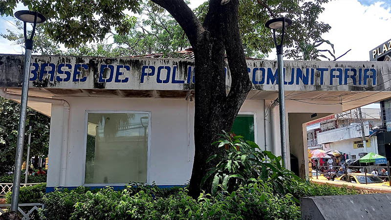 En la caseta hay presencia permanente de los policías de la subdelegación del 911, solamente haciendo presencia y atendiendo algún tipo de denuncia de los pobladores o comerciantes de los alrededores.