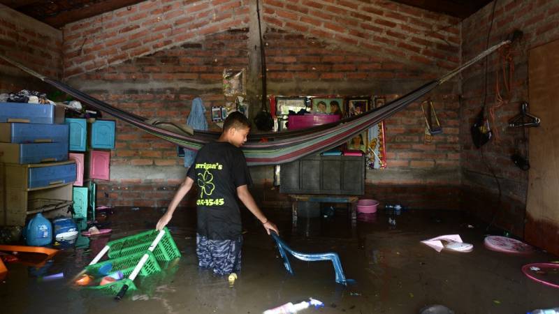 Colonia Carrillo inundada debido al desbordamiento del Río Grande a causa de la tormenta Julia, San Miguel. Foto Iliana Ávila