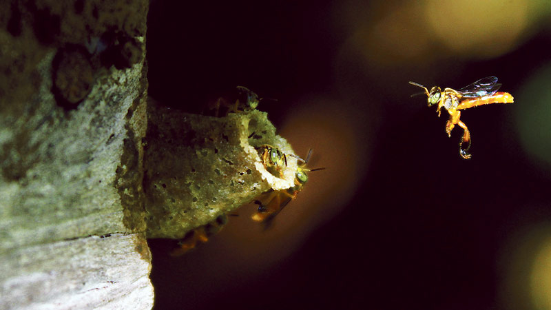 Al no utilizar su aguijón como defensa, usan un mecanismo basado en morder y expulsar sustancias irritantes a los ojos.