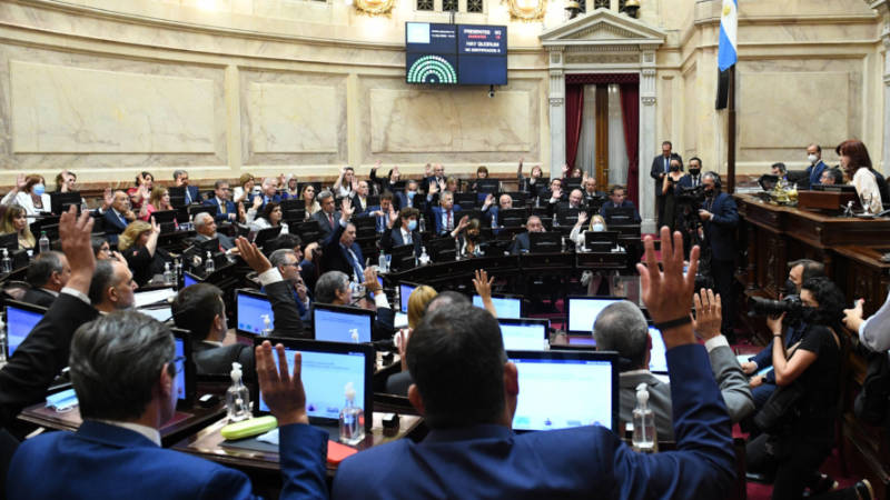 El proyecto obtuvo 56 votos a favor, 13 en contra y tres abstenciones, en una sesión que se extendió por casi 10 horas. Los rechazos fueron de la coalición gobernante Frente de Todos, partida por este proyecto. La vicepresidenta del país y presidenta del Senado, Cristina Fernández de Kirchner, instaló la sesión este jueves pero luego se ausentó y no regresó al recinto.