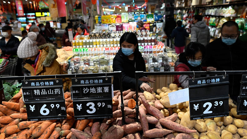 Los clientes compran carne en un mercado en Shenyang, en la provincia nororiental china de Liaoning. Foto AFP
