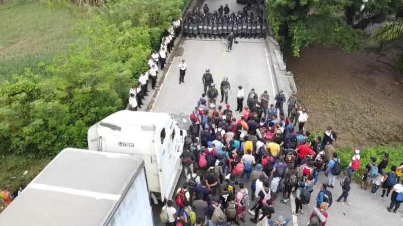 h-Internacional 18-10-2022 Ejército de Guatemala frenó a cientos de migrantes venezolanos disparándoles gas lacrimógeno