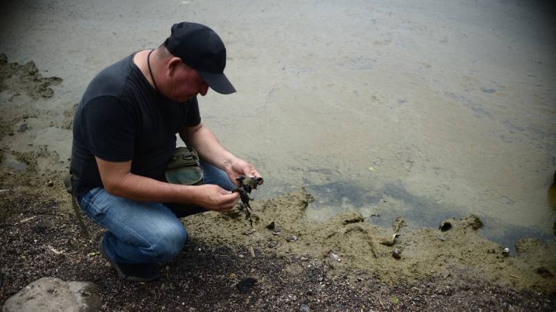 h-Noticias 05-05-2022 FOTOS: "Esto es putrefacción, huele horrible". Población alrededor del lago de Coatepeque es afectada por las microalgas