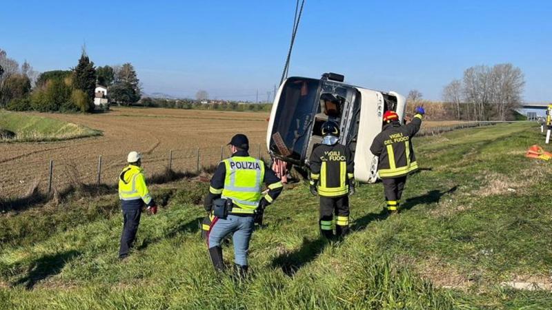 h-Internacional 13-03-2022 Tragedia: Autobús que trasladaba ucranianos refugiados a Italia, pierde el control en fuerte accidente dejando un fallecido